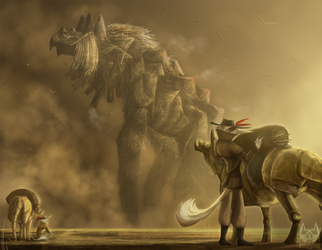 I remembered the game "Shadow of the Colossus"