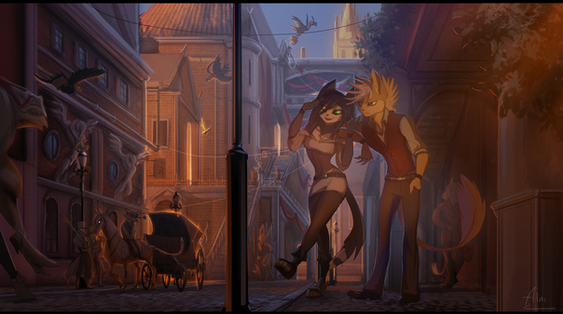 Great scene, lovely composition, ambient lighting is superb, the attires compliment Orest and Haalo, working with their poses and the background finishes the piece. Well done, great work Jetera.