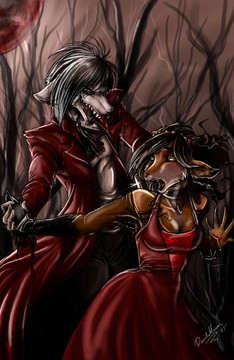 Такая завораживающая и мрачная атмосфера..) эта анатомия, фон, да и сами персонажи! *_*