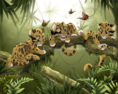 I can't get enough of your backgrounds The water looks so realistic. This causes me to hear water splashing in my head! The ocelots are beautiful; one of my favorites as well! I think you did a wonderful, beautiful job with this.