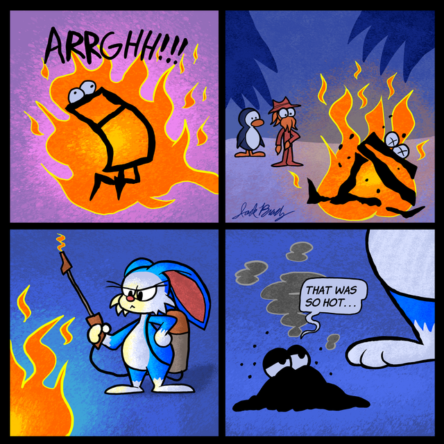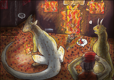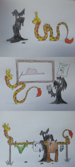 Okay, something went a bit wrong. A bit. Who gave Stain and Snaffe access to the stove?Original drawing had speech bubble. The text was in Polish, so I've tried to add translation in gimp, but it didn't match at all. That's why I decided to remove it completely .