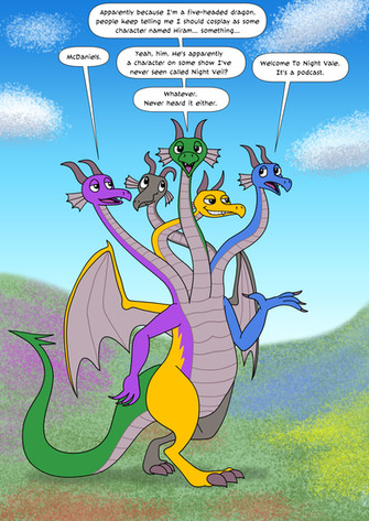 A lineless comic about my favourite three-headed fellow. They are chilling in their cave on Dragon Island, enjoying some artifacts they found.