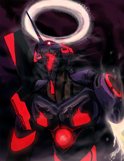 The perspective you gave it makes it seem pretty epic and almost, human? As if the Eva were pondering or recalling something. I am a sucker for anime paintings.