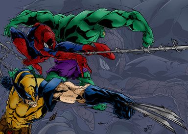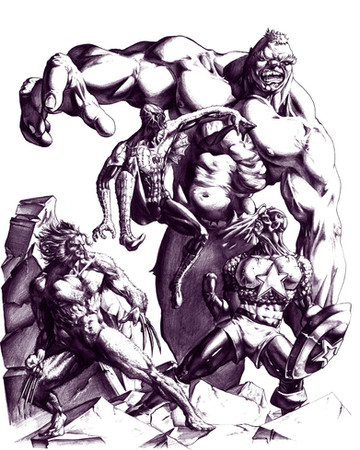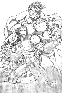 Loving the anatomy on this, Hulk especially. Proportions of them are all nice, and i like that ur branching out a bit with ur style, right on.