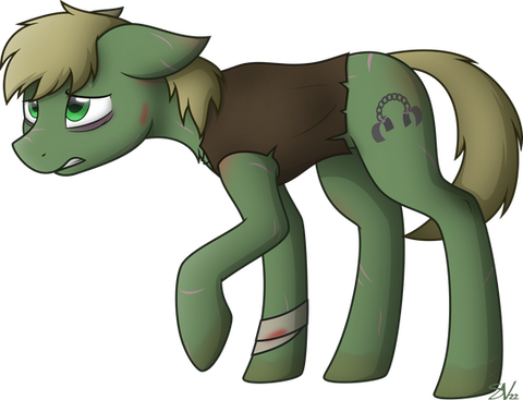 Here's weeping Murky Number Seven from the Fallout Equestria side fic with the same name. Murky was born as a slave and have never experienced freedom. He's terribly sick of radiation and many other things and also have a taint mutation making his ear bigger and more sensitive than most.It's a really great side fic that I'm following where the only back side might be how sad it is... but that's the point, right?