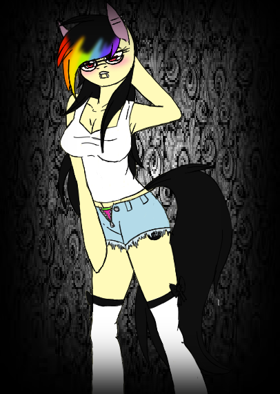 #clothing #gum #oc #pony #dalavault #fishnets #layingdown #midriff #pinkpanties #tshirt #whitetshirt #jeansshorts