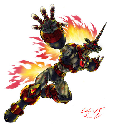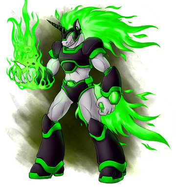 Here is a picture of the character Dreadmane, a fan creation of Wolfboi (one of my Watchers). He has several of these Nightmare Unicorn Reploid designs, all of them kind of "related" in that robotic sense.Dreadmane here has, to me, a real sense of brutality, so I made him the meanest looking of the three unicorn "brothers". His menacing snarl and flaring mane tell of his ferocity and get-the-hell-out-of-my-way outlook. Out of the three illustrations, I actually like how he came out the most.