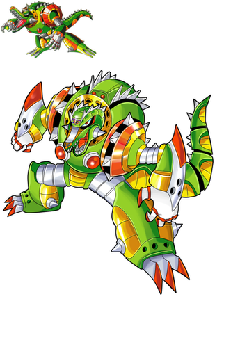 I never felt much of an organic feel from NetNavis; I've always kept in mind they are digital beings and therefore mechanical/artificial in nature. In my opinion, the fast majority of the NetNavis looked really synthetic to me, so guess that's why I let go the technical aspect of design. Also, being a crocodile (not an alligator, hence the pointy snout and the jutting jaws and green coloration - but that's not really a big thing) have a lot of armor plating in real life, so the more robotic appearance fits for that reason as well.