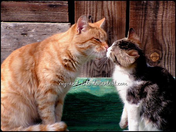 awww thats adorable....i dunno though. id watch out if i was the little one. that big one looks like e's gonna swipe that little furball.