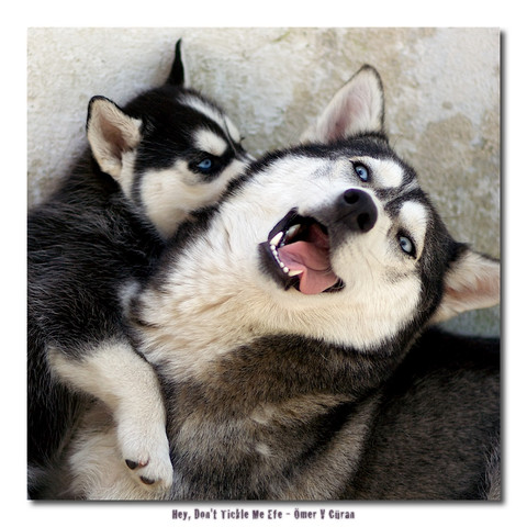 Anyway wolves do that in the wild to show dominace and huskis are closley related. So that's probobly what the mom is doing, either that or shes real hungry! Faved.