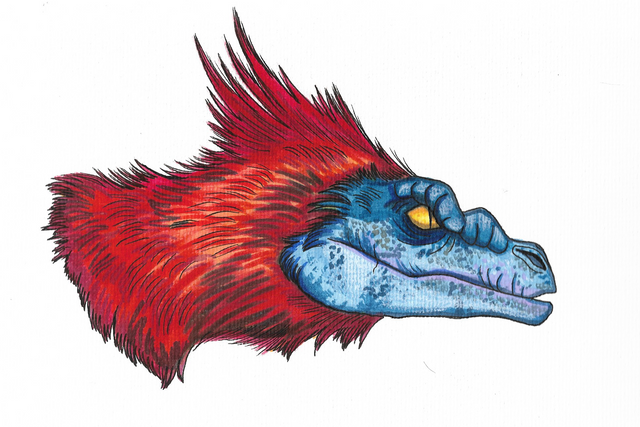 #digitalart #beak #birdlike #blue_eyes #creature #crimson #feathers #feathery #fictional #fluffy #headshot #raptor #red #digital_art #green_eyes #dinosaur_like