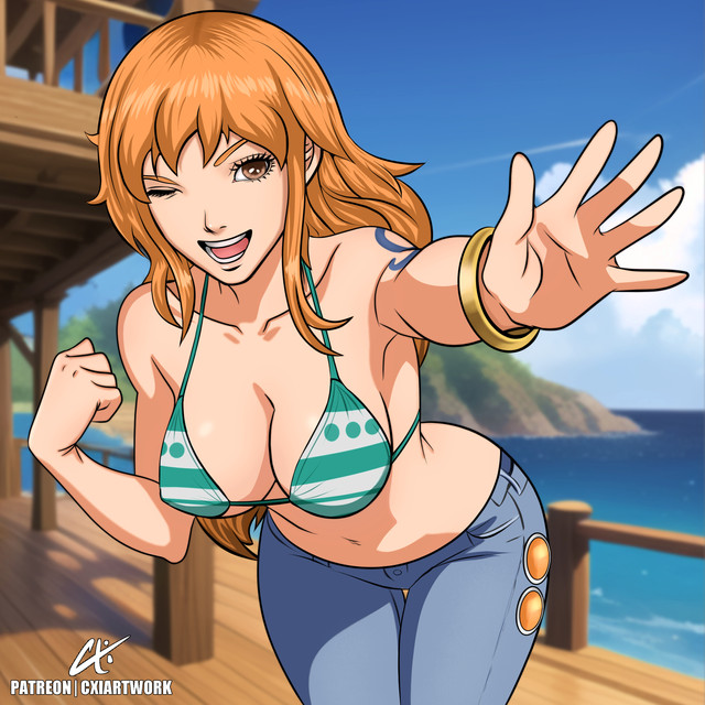 #bikini #boob #fanart #female #luffy #nami #nsfw #onepiece #swimsuit #gear5 #patreon #nsfwpatreonartist