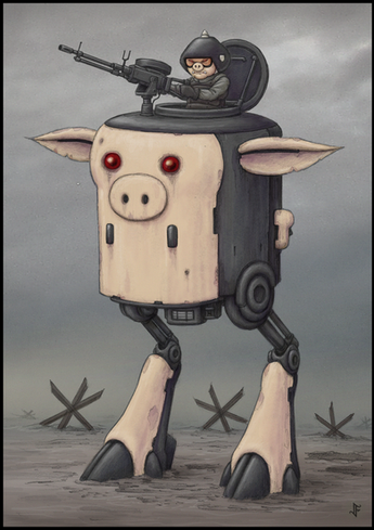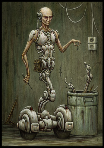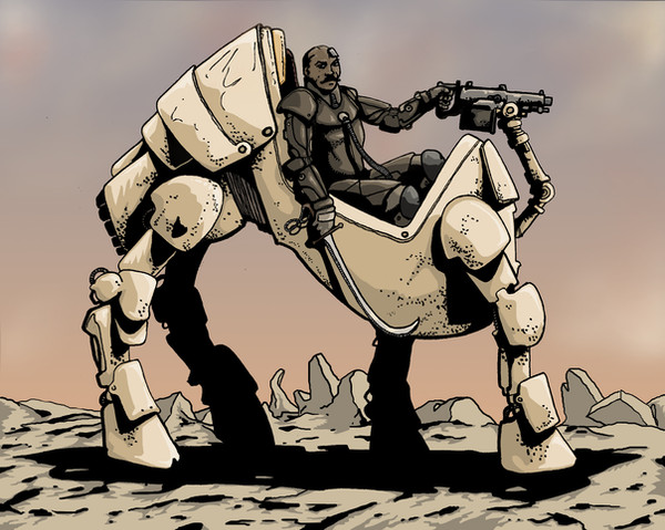 More ethically minded readers will be either comforted or appalled by the fact I've envisioned Third Revolution cyborgs as largely organic but mindless creations that act as larger, stronger bodies while their human riders act as brains. This was partly inspired by the impressions Spanish horsemen made on horseless Native American cultures that initially mistook the horses and riders as composite beings.