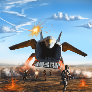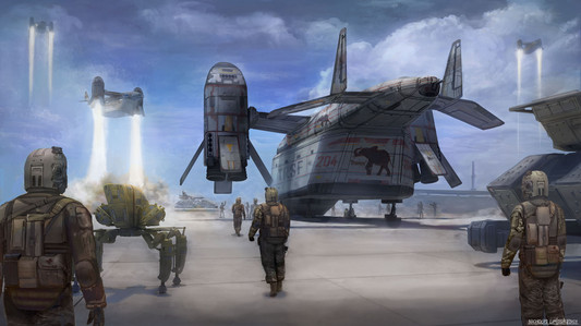 As the smoke from a burning settlement casts a dark pall over the desert, an Alliance rotodyne descends to extract the surviving members of a badly mauled militia squad. These transports were built to fill the niche between aeroplanes and helicopters. Though tiltrotors can fly higher and faster, rotodynes’ greater lifting potential and lower operating costs arguably make them superior strategic assets.