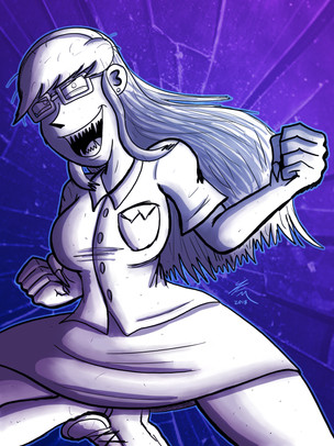Glitch Girl fan art! This a portrait of Ivi, a character from 's project, Glitch Girl. You may know JCM for his bomb-ass Loud House art--that's how I found out about him--, but he does create his own original content. And lemme tell ya, I love his OCs and his future comic, Glitch Girl looks really cool. It's kinda hard to explain because the project is still in concept stages, but Ivi here has the power to duplicate herself--with each subsequent copy fading away. From what I can tell, the story has sentient hand puppets, teenagers, violence, scary images, the Anti-Christ, and a holy savior with a bunch of eyeballs on her left arm. A dark and gritty manga. Expect more GG fanart from me, yes sir!JCM's Glitch Girl poster--------->