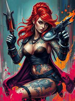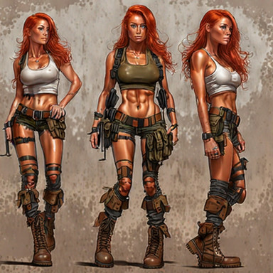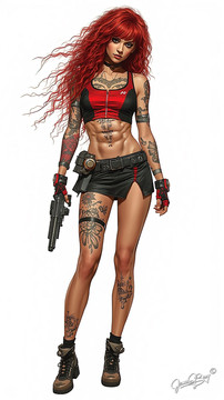 #characterdesign #digitalart #conceptart #originalcharacter #warrior #abs #gunslingergirl #hardbody #inkedgirl #maneater #miniskirt #redheadgirl #rockhardabs #dangerouswoman #hotsexywoman