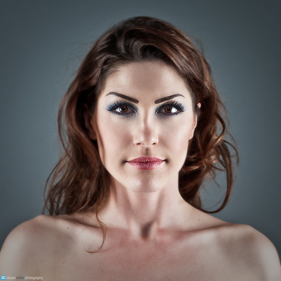 If I may be so bold, a piece of constructive criticism: I think the photo would work better, if she were leaning back some. The angle of her head works just fine, but I feel that it would be more visually appealing if her collarbone and chest ectended further into the frame. It seems that there is a touch of arc in that line, that leads away and to the right; if that were more concave, if there was more volume of her and not negative space, I think it would increase the appeal. Further, if the line where her chest crossed the bottom frame of the image were more to the left of centerline, it would create a sharper angle at the base of her neck, add more visual interest, and better lead the eye up to her face. My two cents. I'll shut up now...