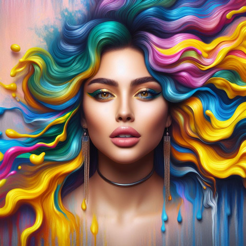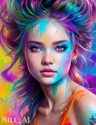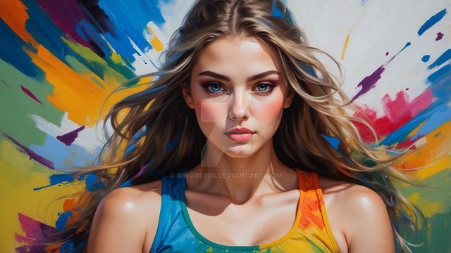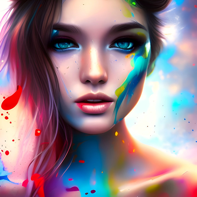 #adult #appealing #athletic #beautiful #blond #colorful #desirable #fit #hair #long #lovely #paint #painted #sensual #sexual #slender #slim #splattered #woman #young #with