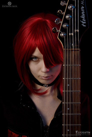 this picture is absuloutly lovely, The lighting is perfect and the pink hair along with the red skity really make it. The face isnt stark white and has a nice color to it making her look lively. Well done c: