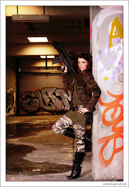 A model that works out. Toned muscles = win!!! Like this series. Very nice. Any woman with a gun (M4, M16, whatever...) always wins with me.