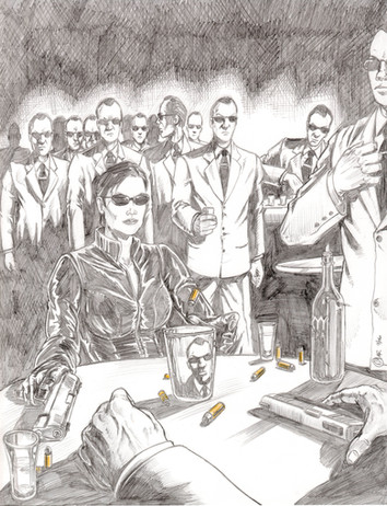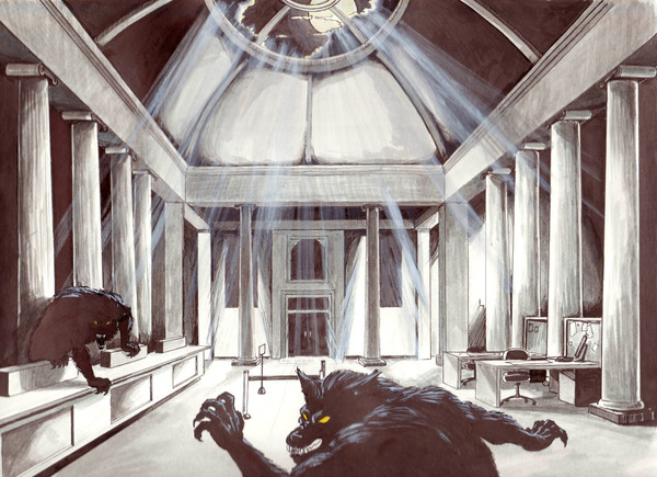 the werewolf looks like hes thinkin wat tha fxxx!!! i think this art piece is cool