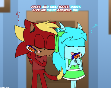 I love that cocky expression and pose you gave her, and the expression of that poor rabbid. xD
