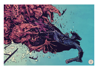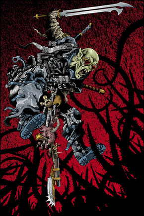 Fuckin' badass. I love poses like this where someone is fighting off a swarm. Love the no-look kick in the chest.