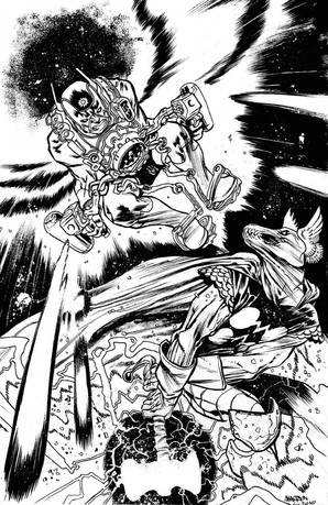 I really like the texture and grit your getting in the inks. The background has a lot of neat effects. Really nice!