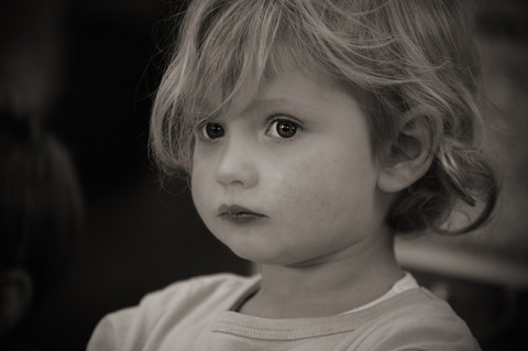 To me, it seems like that very moment you took the picture, that she wasn't there....she was somewhere far-far away. The perfect light and the black&white surely completes it.