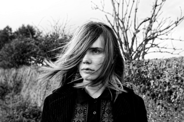 Regal. I like the way the details of her hand and face are bright against the dark of her coat and hair, and the way her coat and hair stand out against the lightness of path and trees.