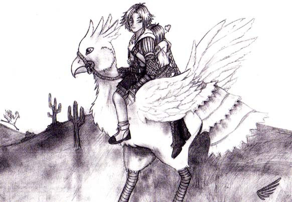 I just love the way you've done the chocobo. The muscles in its' legs and feathers are very well done. Great pic.
