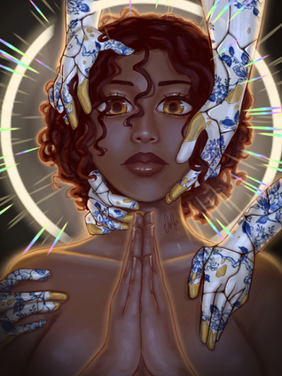 #digitalart #originalcharacter #digitalpainting #characterdesign #portrait #body #cracks #krita #noai #woman #kintsugi #humanartist
