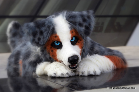 A cute dalmatian with a lot of hand-sewn spotsI made this costume! Want to see more of my work, or order a custom tail of your very own? Check out my website!