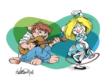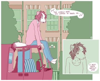 Wow, I love your style! Great lines and wonderful color choices, awesome poses and good detail (like in design on the mug, the tape on the guitar). Amazing job!