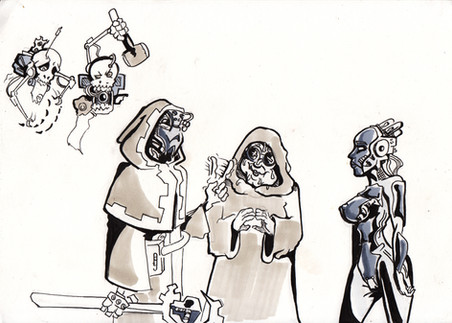 Ivor the IIIrd ran towards the Techpriest Jinksa'sΒ workshop. He entered with a boom in the shop screaming:- Techpriest get your sword......WAIT!!! WHAT THE EMPEROR....