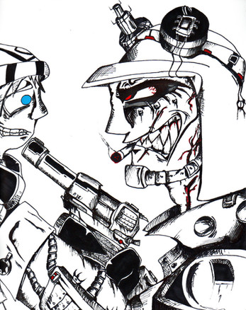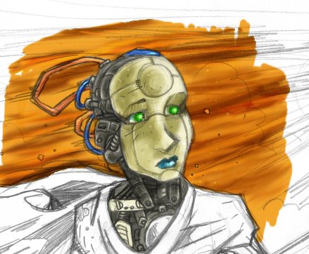 "Listen Meatbag! Grab ya shat, grab ya heretics and leave my port before I decide to lobotimize you and turn you into a cock warmer!"