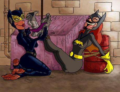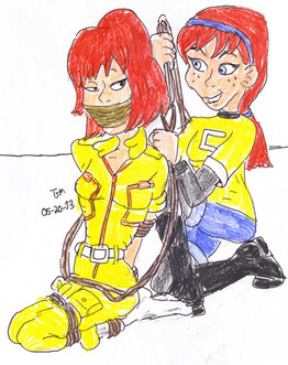 Clover is on a mission. April is investigating a story in the same building. Clover captures April and doesnβt believe she is just a reporter and tickle interrogates her pantyhosed feet with a feather to make her talk.commission for