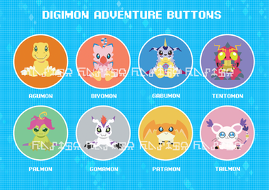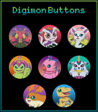 This month's Patreon theme was Digimon so here are the Main 8 digimons from the only real season of Digimon!to match my older digidestines buttons from years ago