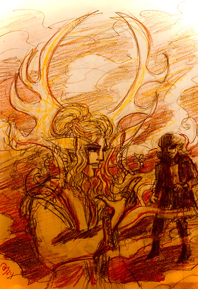 I meant to comment on this before to say that I loved how this came out. I really like the combination of the smooth coloring with the more sketchy bits. And he's got a wonderful sense of attitude to him -- very complex, kind of fitting for that period of his life.