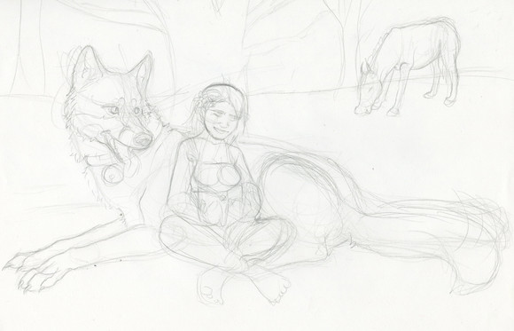 Love the linework here, so stylistic and the fur bedding looks great too! The wolves came out great, you should be proud!