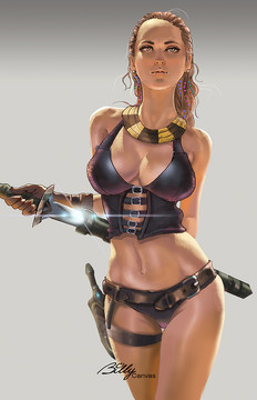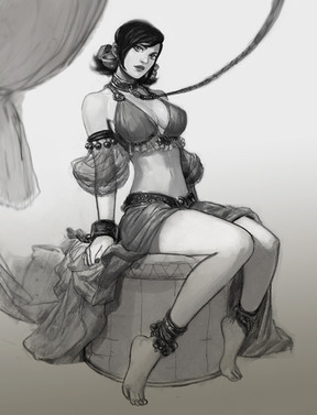 Well, that's a little odd considering breasts tend to be different when one is wearing a bra and when they are not, but good art nonetheless. I rather like the design of the second one.
