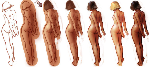 I also draw the body naked before adding clothes. It makes it easier to fit the clothes to the body.
