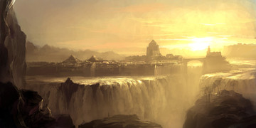 I don't know why, but I got really excited when I saw the little person down in the right hand corner... It's very beautiful... Somewhat reminds me of Atlantis, because of the statue's head down in the left, and the water that is cascading around...