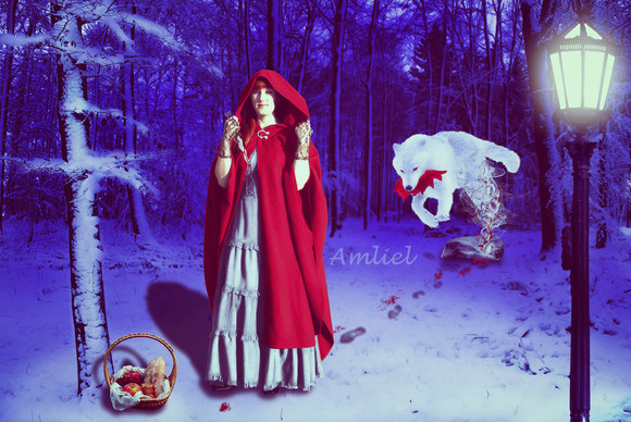 Nice work sweetles! Great balance and mood, and that red hood really draws your eye to it! Scary wolf too!