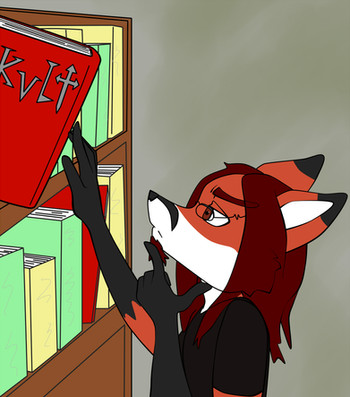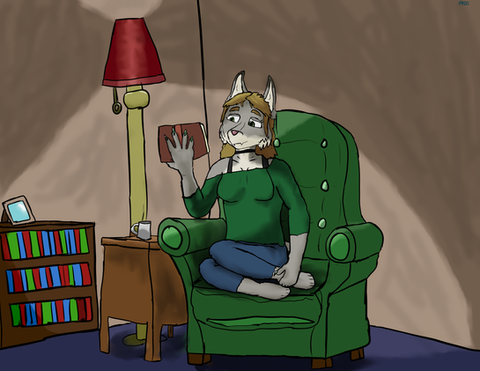 #books #desk #fox #furry #girl #sara #anthrofurry