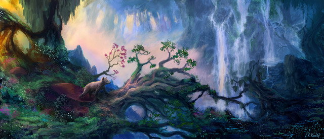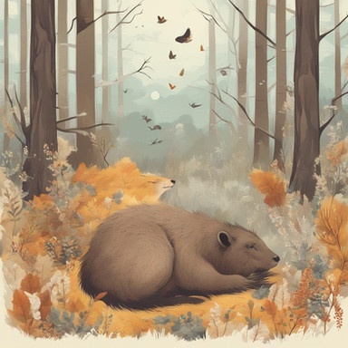 #digital #environment #friendship #landscape #nature #scenery #sunset #art #animals #bear #bunny #cute #dusk #forest #friends #happy #heartwarming #nap #night #sleep #sunrays #woods