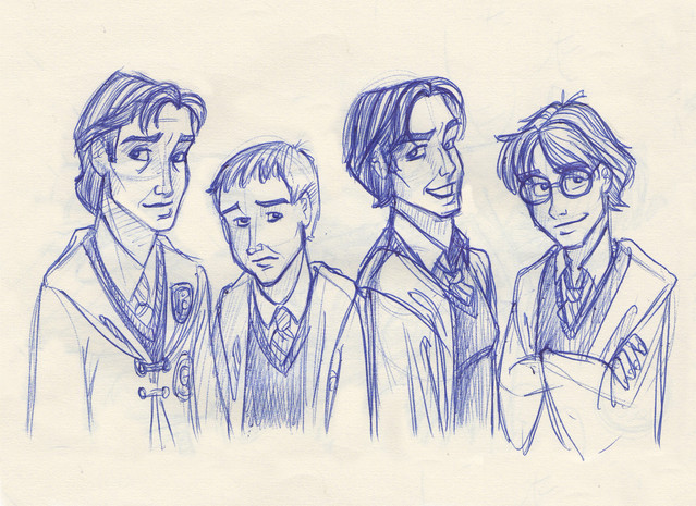 Yay, the marauders! ^^ Peter is too stupid to look into the cameraJames, Remus, Sirius and Peter belong to J. K. Rowling