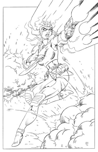 Here's an old picture that I did way back in High School. I think just about every modern artist (and me, whatever category I fall in) draws the overly popular Tomb Raider character at least once in their lifetime. The colors were once again done by Seth Ammons, so special thanks for him taking the time to color it so long ago.--J