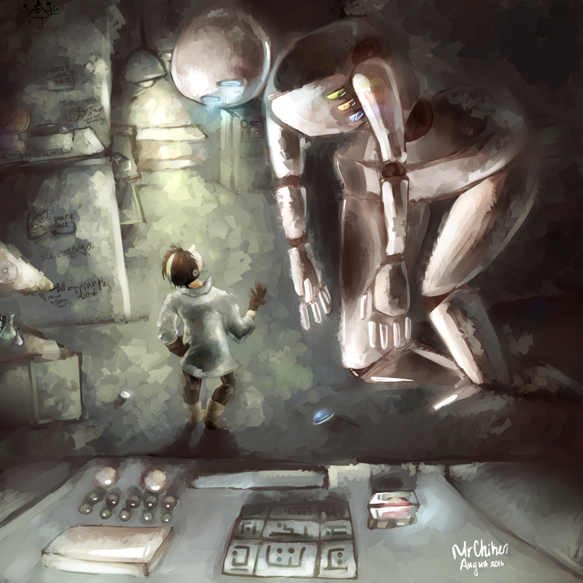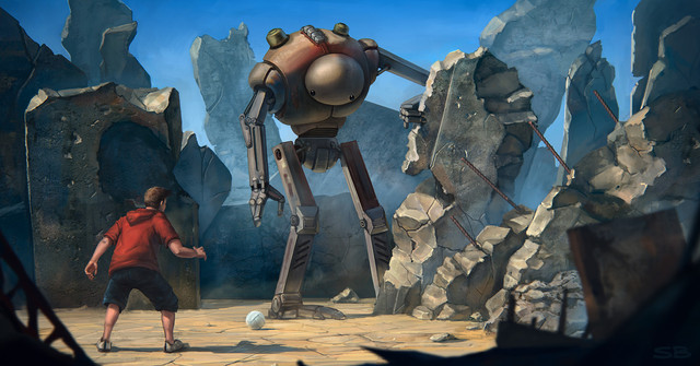 I love how you rendered this, the boy and robot really stand out and feel realistic in your painterly style. Nice job!