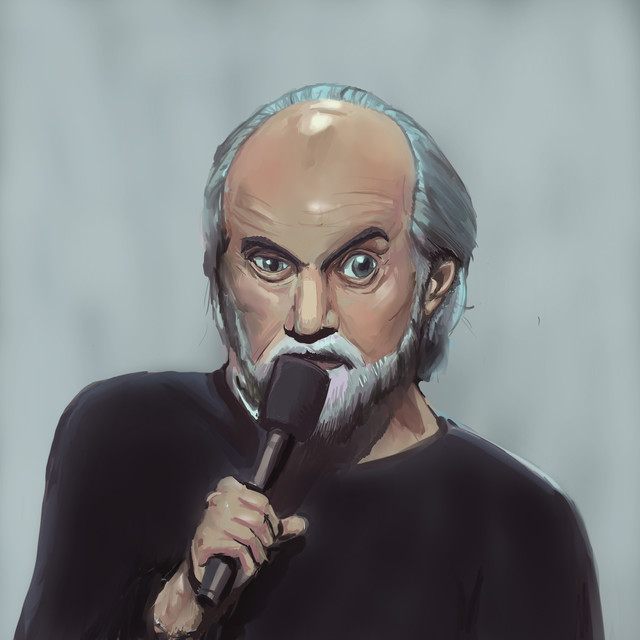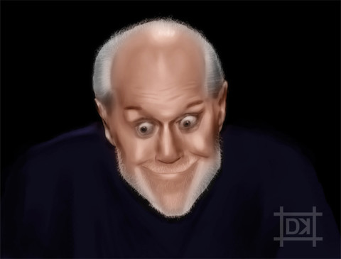 You, my friend, have successfully managed to capture the very essence of George Carlin. The look on his face is one of complete strain at all the bs in the world, yet also one of begin able to be extraordinary goofy in presenting the ugly truth. Well done.